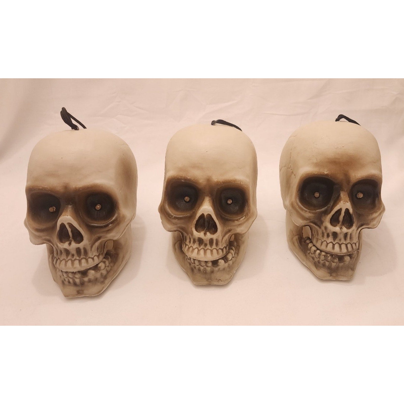 3 pack -Animated Lighting Hanging Skulls -Eyes light, mouth moves, sound effects