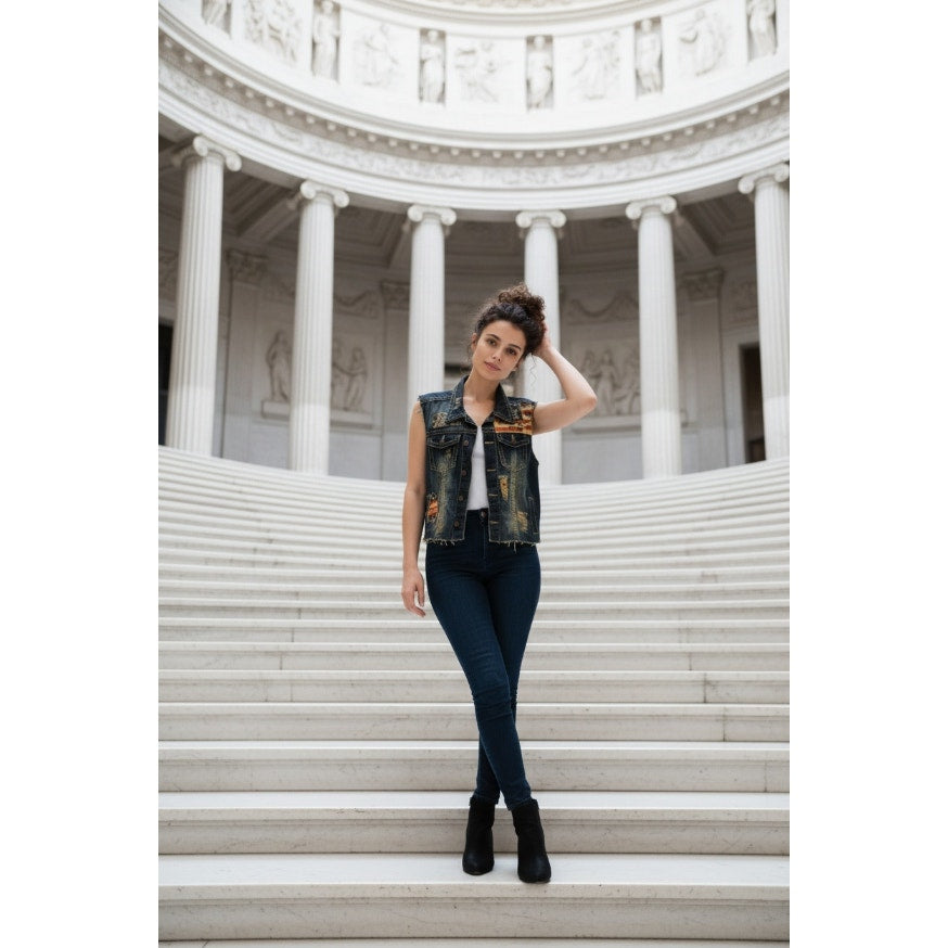 American Themed Jeans Jacket - Smoke Rise - Large
