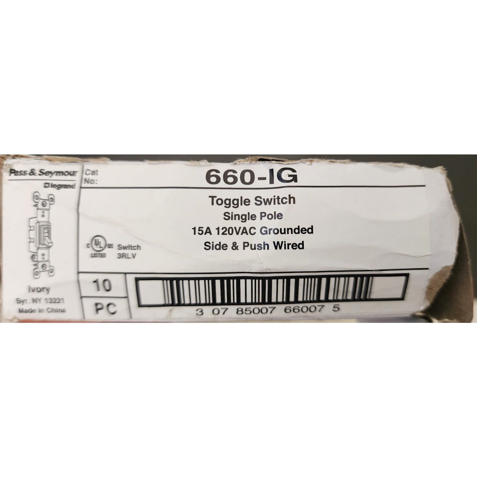 Box of 7 - Pass & Seymour Single Pole Ivory Toggle Switch - 660-IG