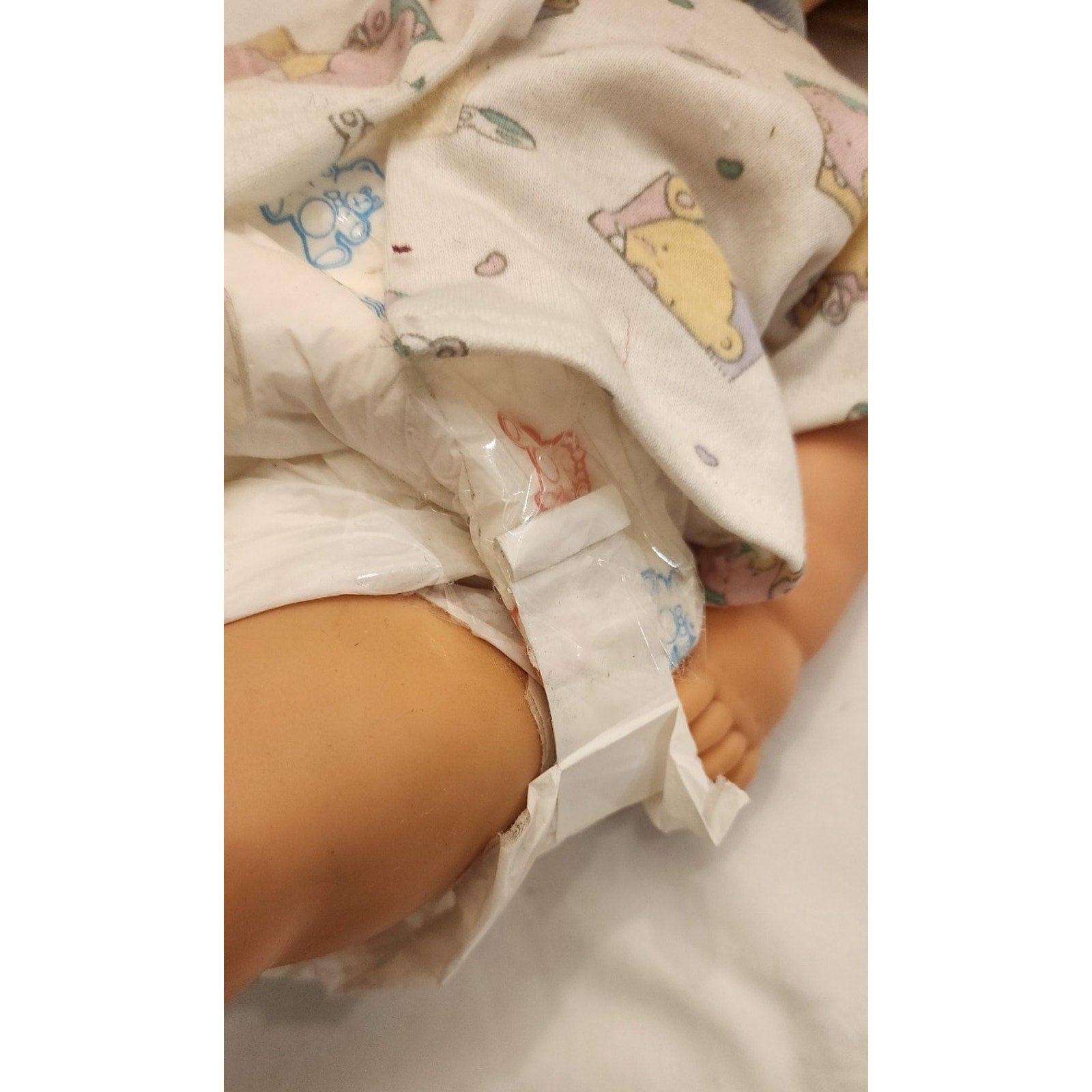This doll does not have bottoms. Someone put a diaper on her. I'll send the diaper with this doll. :)