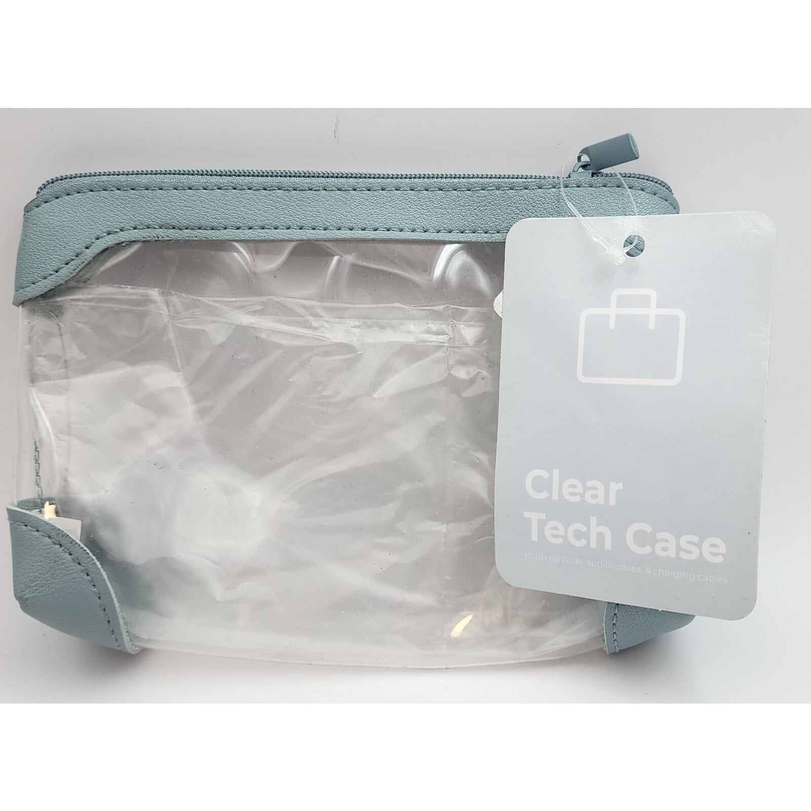 Clear Tech Case for Earbuds, Cables, Etc. Light Blue Accents. Vivitar