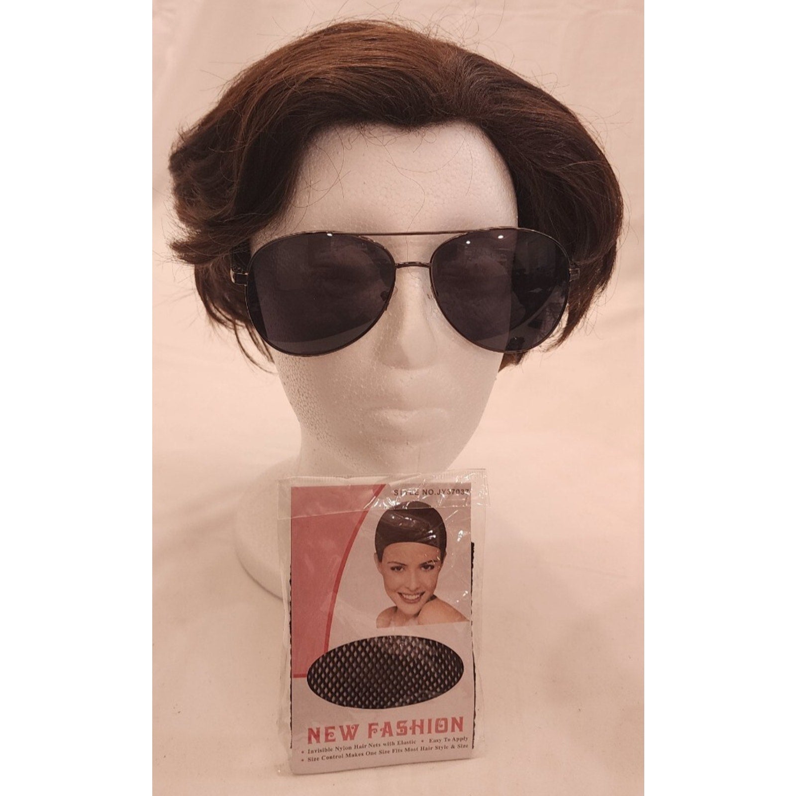 Cute brunette bob wig with sunglasses and hair net with elastic. New