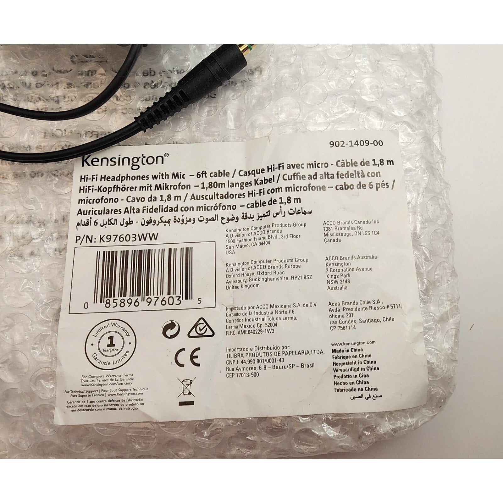 Kensington- Hi-Fi Headphones with Microphone -K97603WW - Black- Universal- 3.5mm