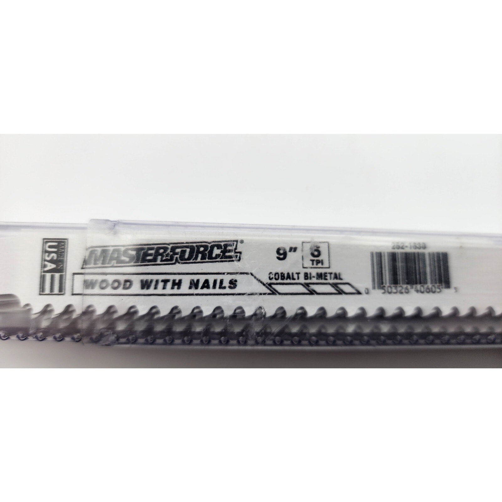 Pkg of 15, MASTERFORCE 9" Cobalt Bi-Metal Reciprocating Saw Blades -Wood W/Nails