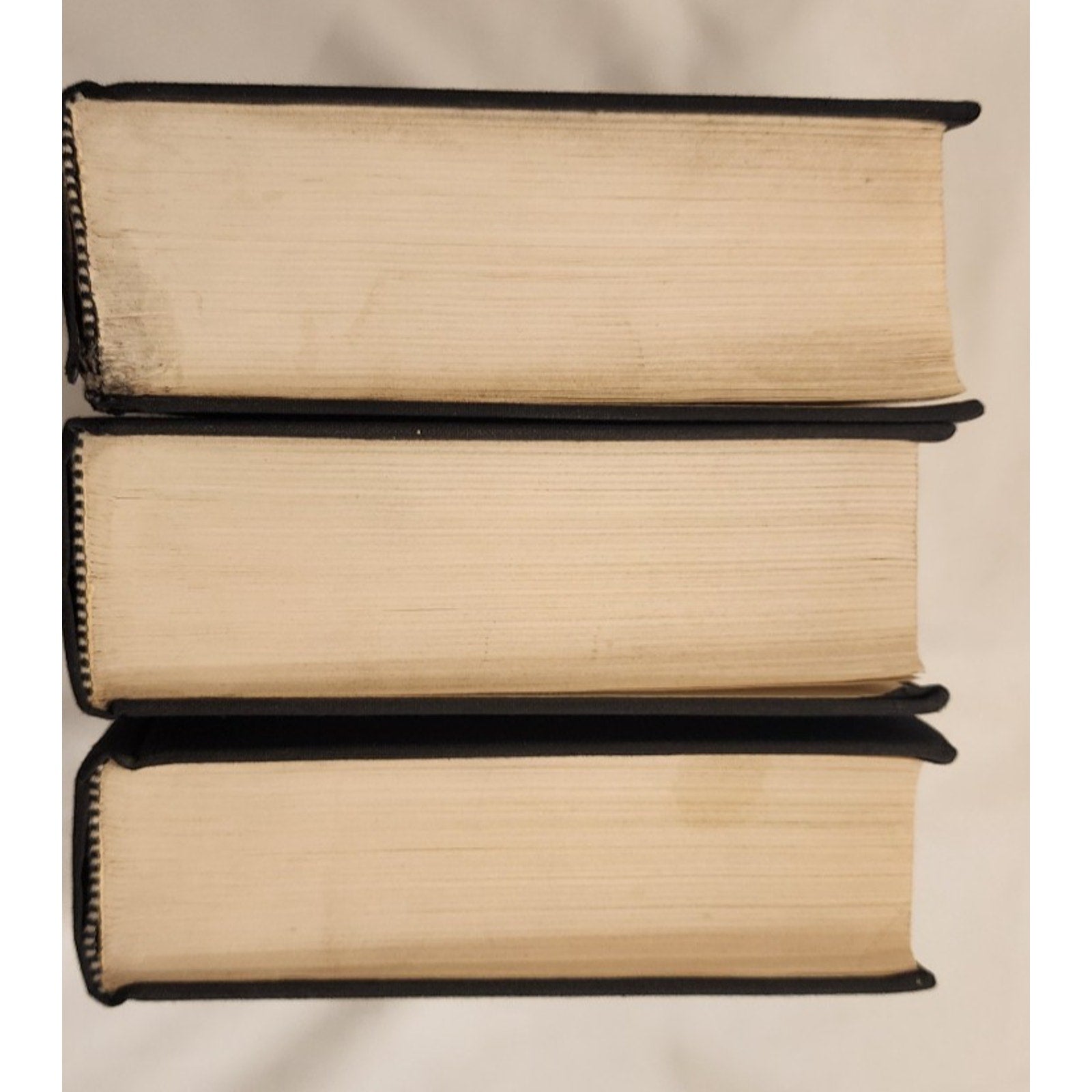 Pages of these books are great. Volume 1 cover has some damage on the top corner and there is some dusting on the outer edges of the pages from storage, etc. Books are in good shape. Spines seem strong. Would be surprised if Vol 2 and 3 were ever read.
