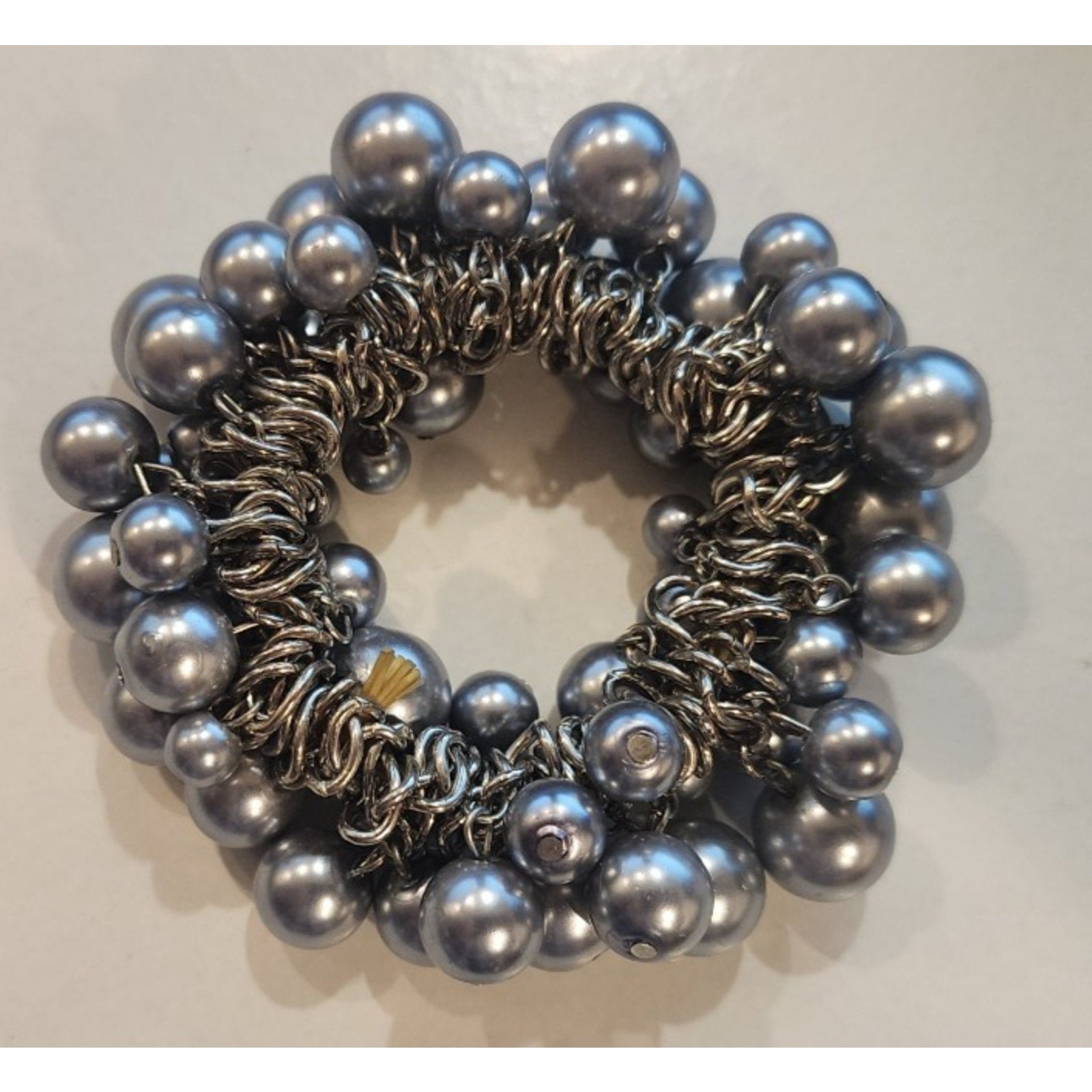 Vintage - Acrylic Faux Pearl - Silver Cluster - Stretch Elastic - Bracelet