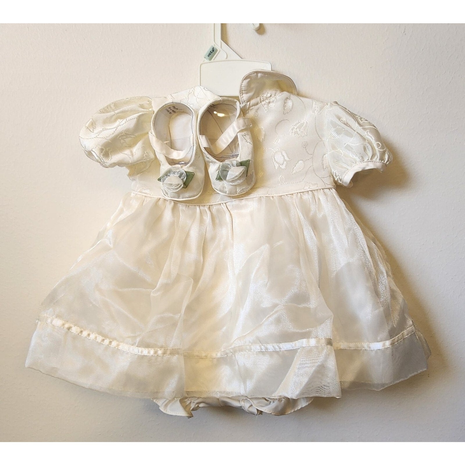 Vintage - Off White Baby Togs Girls Dress w/matching shoes - 3-6 Mo - Party/Formal/Christening