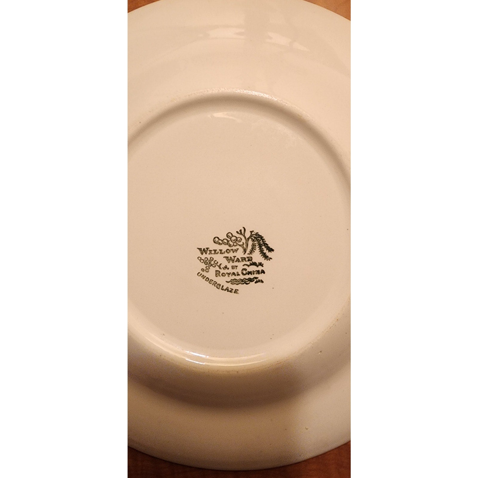 This is a Willow Ware Royal China Underglaze Blue/White Dinner inch Plate - It does have a firing flaw (Pic 2) and one small chip (Pic 3).